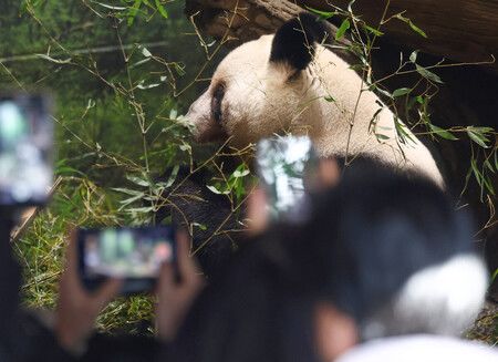返還中國前夕,造訪上野動物園的遊客正在拍攝迎來最終觀覽日的大熊貓曉曉。25日上午於東京都台東區
