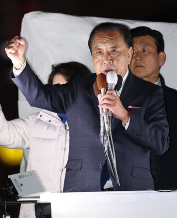 選戰最後一天,進行街頭演說的中道改革連合共同代表野田佳彥。7日晚間於東京都豐島區