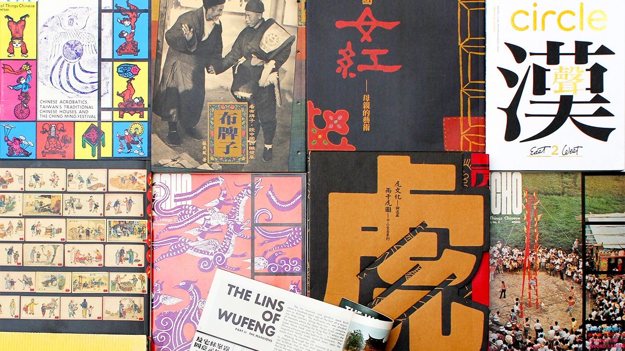 漢聲巷所企劃製作的一小部分書籍。照片中央呈現卷捆狀的是70年代草創期製作的英文雜誌《ECHO》,該雜誌以全英文的方式介紹中華文化,部分過期雜誌有庫存可以購買。
