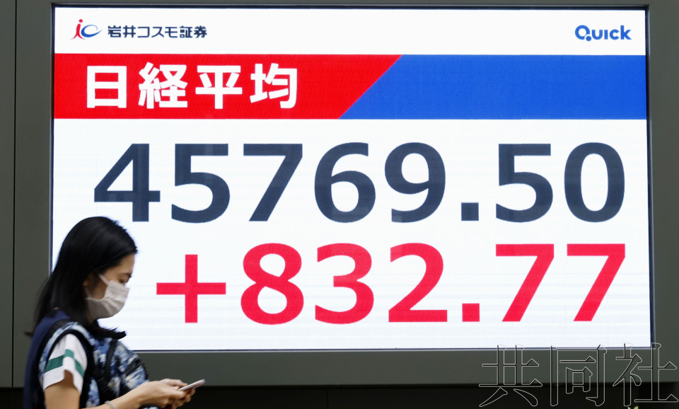 【共同社10月3日電】東京股市日經指數3日繼續攀升,終盤報收於45769.50點,較昨日大漲832.77點,漲幅為1.85%。日經指數時隔約一週創收盤新高。在隔夜美股走高的支撐下,對股指影響較大...