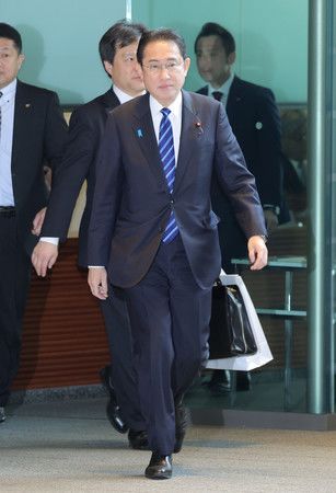 進入首相官邸的首相岸田文雄=3日、東京・永田町