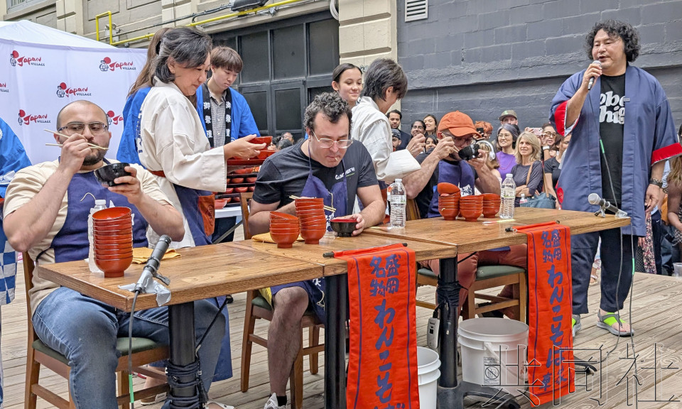 盛岡市老字號蕎麥麵店“東家”的社長馬場曉彥(54歲)表示:“能在紐約宣傳碗子蕎麥麵的魅力,感到無比滿足。請務必來盛岡品嚐蕎麥麵。”