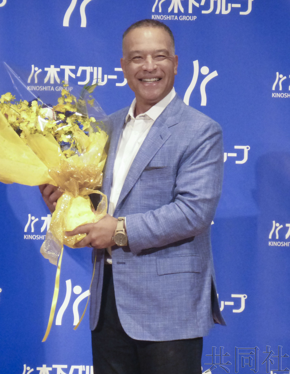 美職棒洛杉磯道奇隊主帥羅伯茨出席其代言廣告的木下集團的活動。11月19日攝於東京。(共同社)