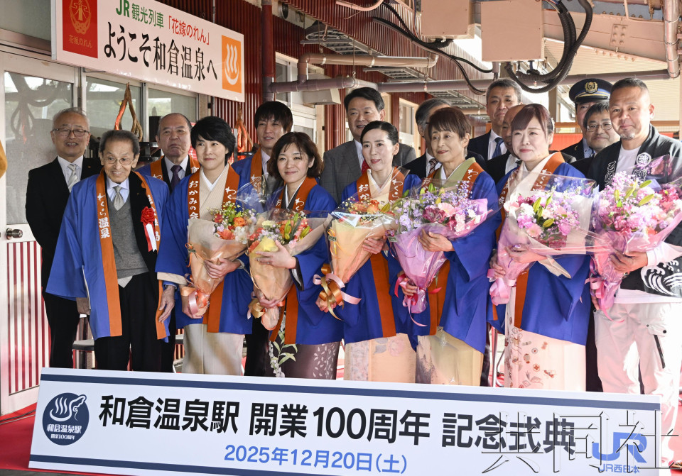 2025年12月20日,JR七尾線和倉溫泉站舉行開業百年紀念典禮。(圖片不出售)(共同社)