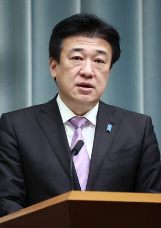 召開記者會的官房長官木原稔。12日於總理官邸