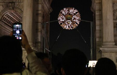 燈光熄滅的「和平之門」聖火台。22日於米蘭