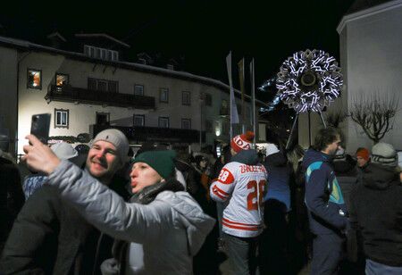 設置於科爾蒂納丹佩佐的聖火台(右後方)燈光熄滅。22日
