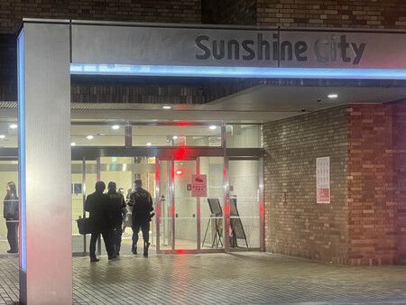 警視廳搜查人員進入女性遭刺殺的商業設施「太陽城」。26日下午於東京都豐島區