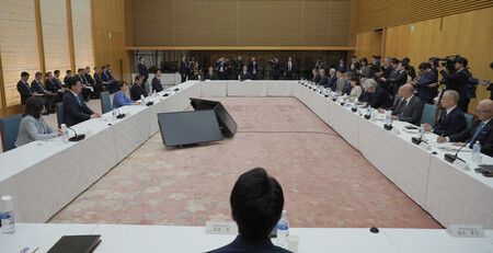 專家會議首次會議現場。27日下午於首相官邸