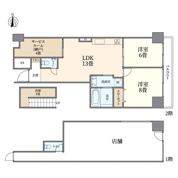 ◆1階 店舗(賃貸中)+2階 2SLDK(所有者居住中)