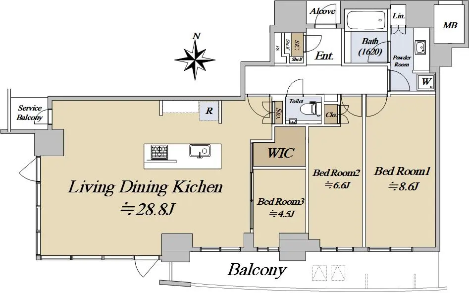 専有面積106.32㎡、LDK28.8帖のゆとりのある空間で、毎日の大切な時間を過ごすことができます。