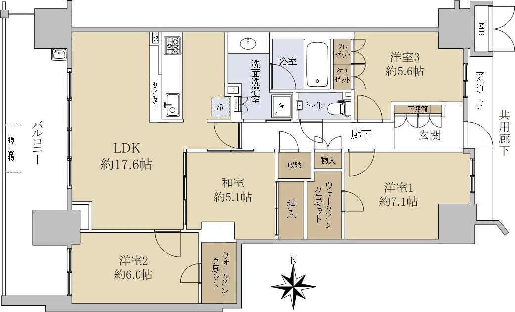◇広々とした専有面積95.62㎡的4LDK