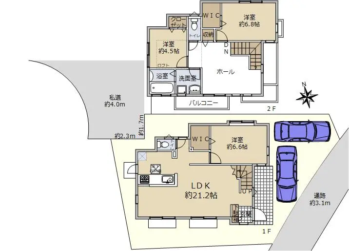・南東側に通路約3.1mあり