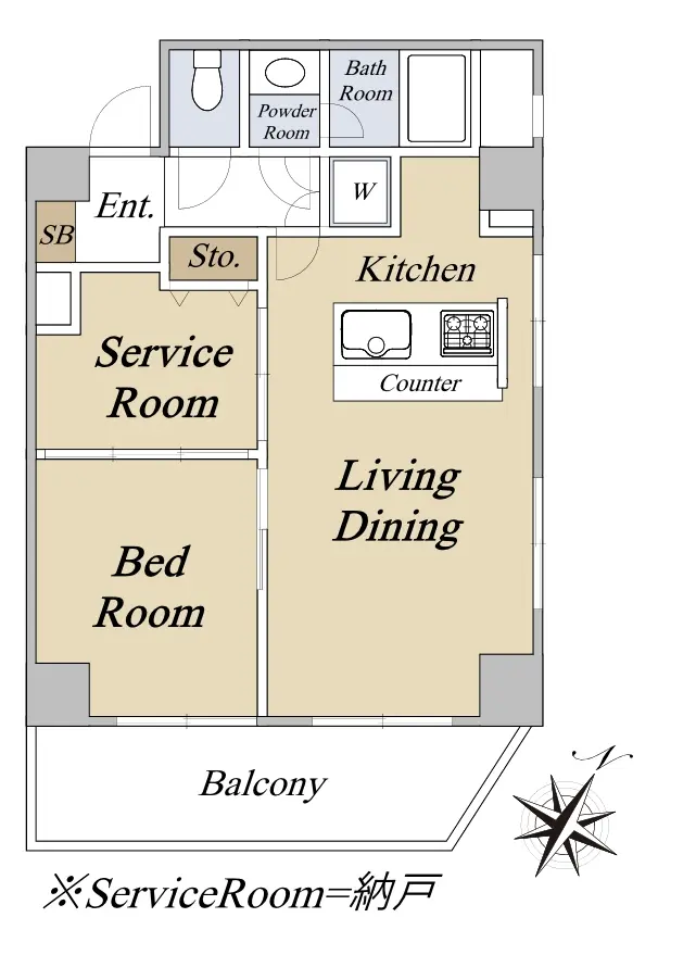 ・1SLDK ※S=サービスルーム(納戸)