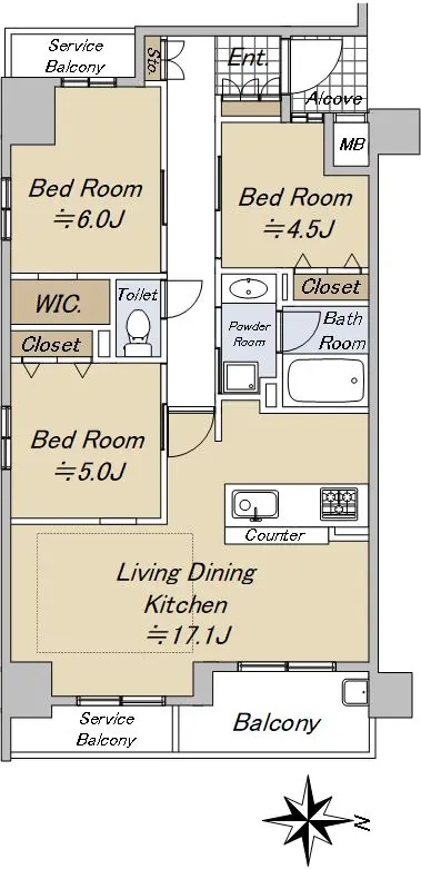◆専有面積:72.80㎡/間取り:3LDK