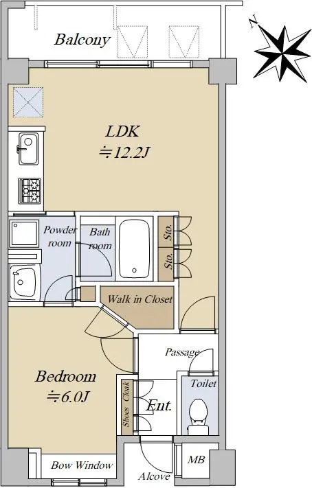 1LDK45.17㎡北東向きの間取りとなっております。