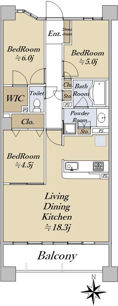 ◆専有面積:75.72㎡/間取り:3LDK