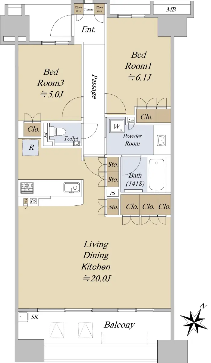 ■ LDK約20.0帖+洋室約6.1帖+洋室約5.0帖