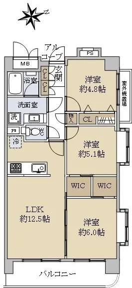 本物件は、5階部分、3LDKのお部屋です。
