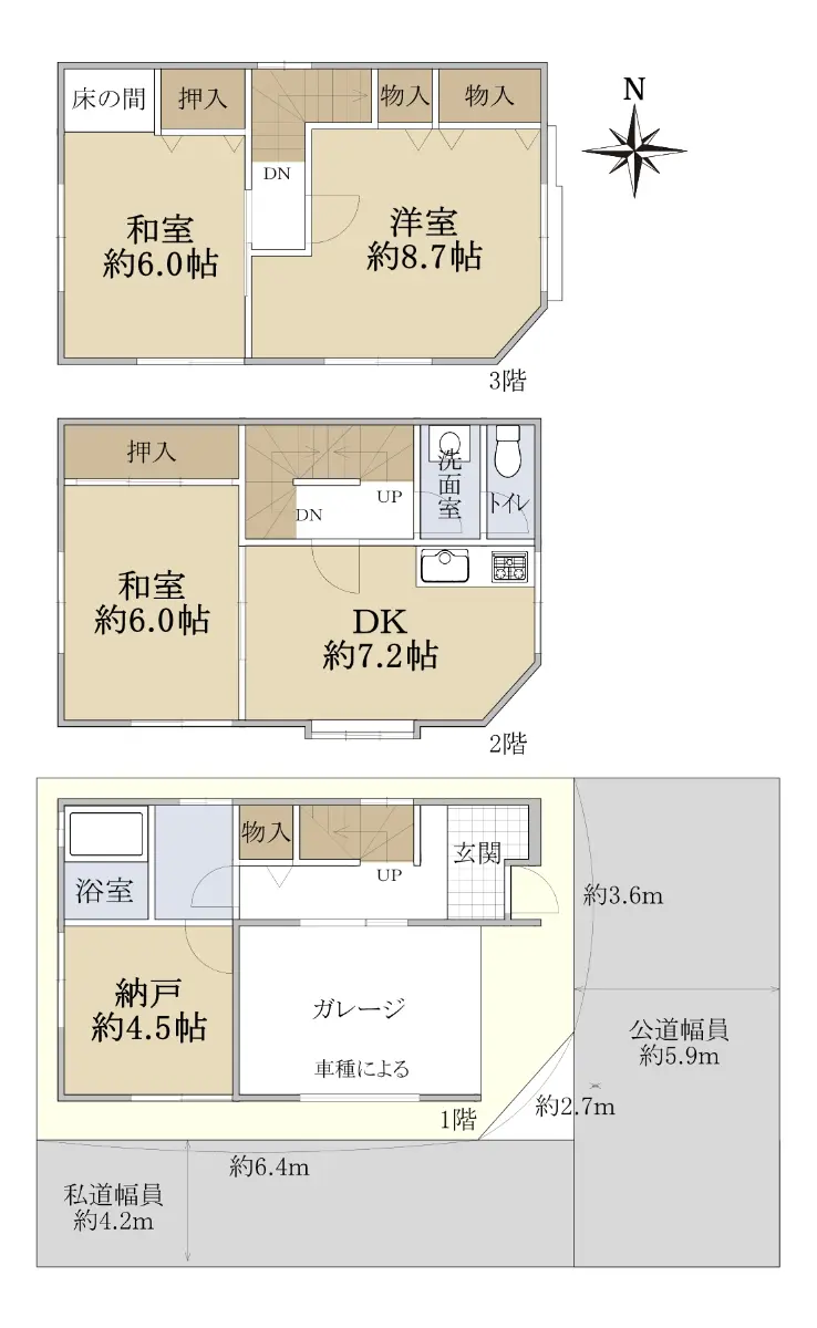 ◇前面道路:東側:約5.9m,南側:約4.2m