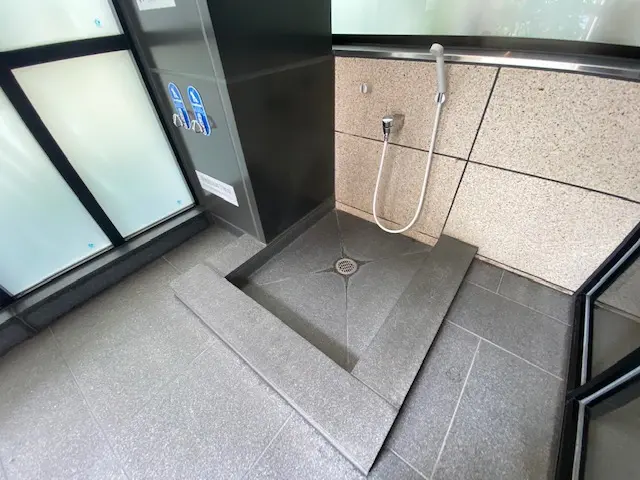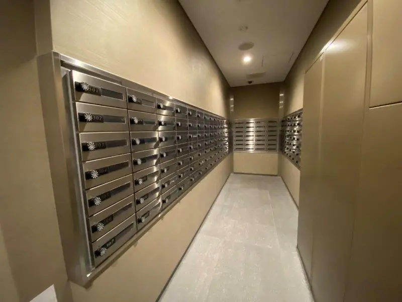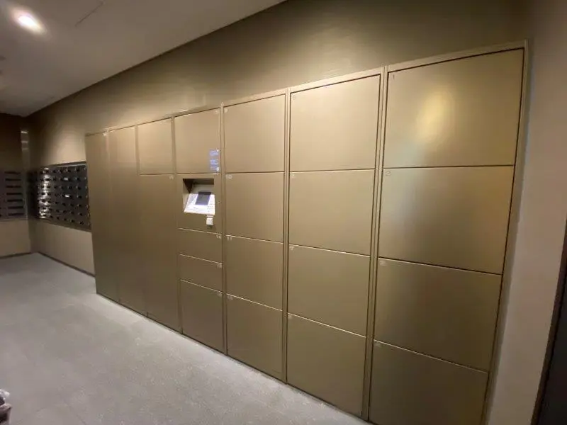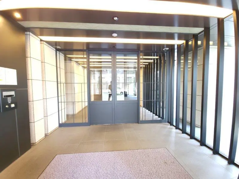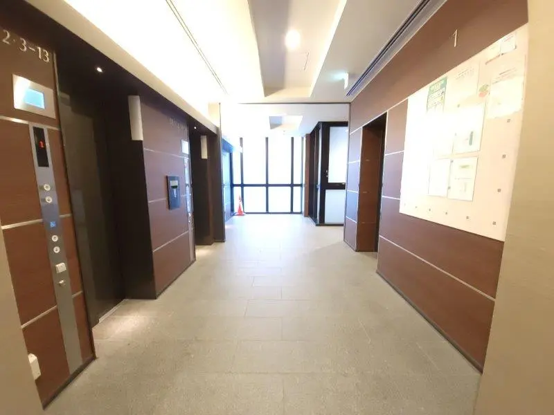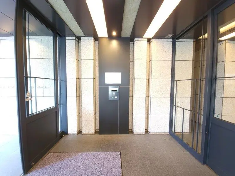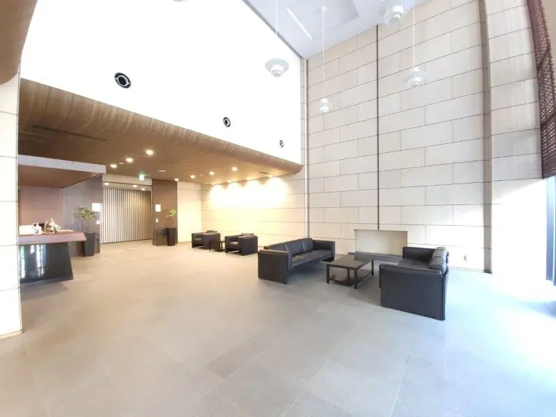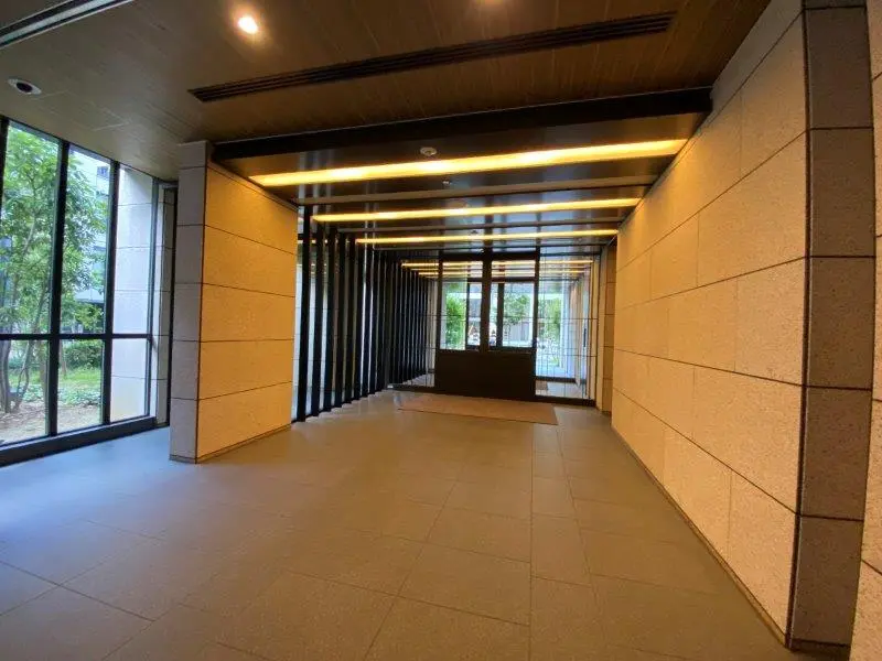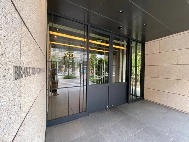 ・列柱が並んでいるようなスマートな外観が特徴的で、行燈のような優しいライトに照らされたエントランスを抜けると二層吹き抜けのエントランスホールが現れます。エントランスホールに設けられた大迫力のガラスウォールには木格子のスクリーンがかけられているため、日差しが柔らかく差し込む快適な空間となっています。ブランズタワー大阪備後町は大阪市エコ住宅に認定されており、外周部や屋上の緑化、太陽光発電システム・電気自動車等充電設備の設置が行われています。