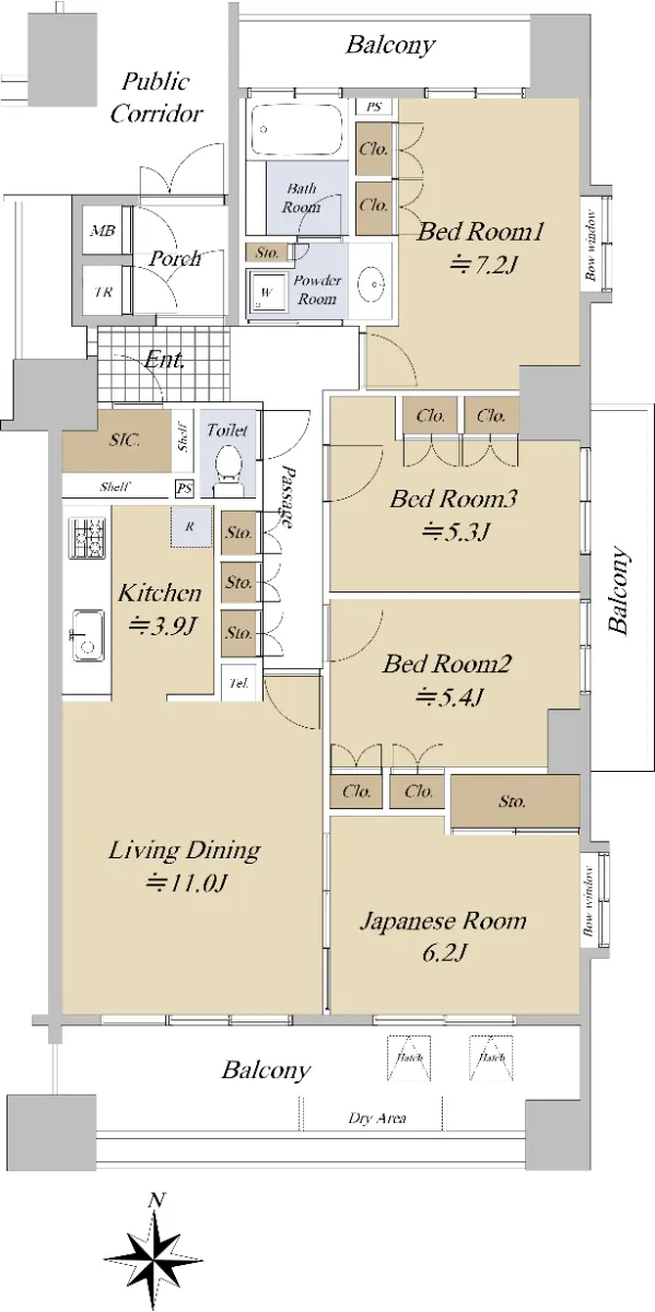 □ 南東角部屋⇒3面バルコニー