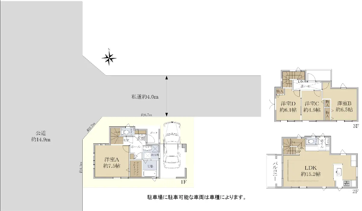 (駐車場に駐車可能な車両は車種によります。)