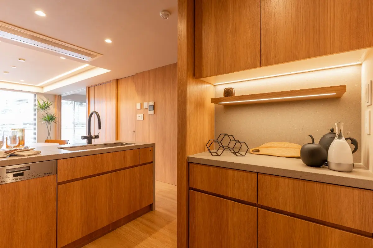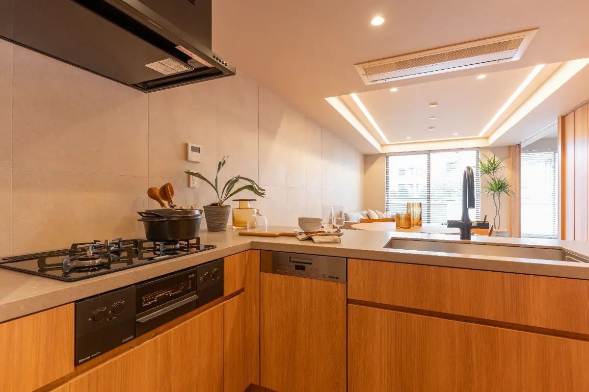 □家族と的会話が弾むL字型対面式キッチンを採用