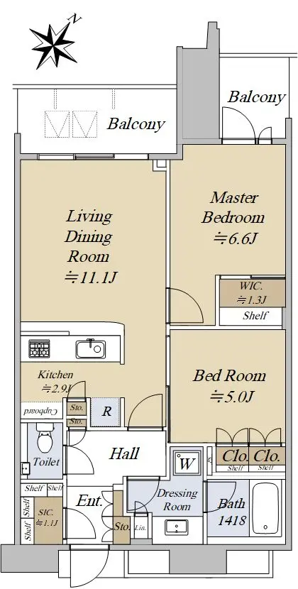 ・間取り:2LD・K+WIC+SIC