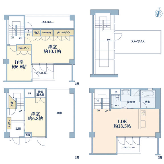 ◆バルコニー3か所+スカイテラス有り
