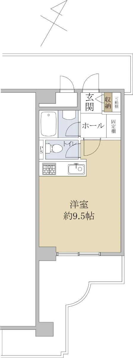 専有面積は24.66㎡です。