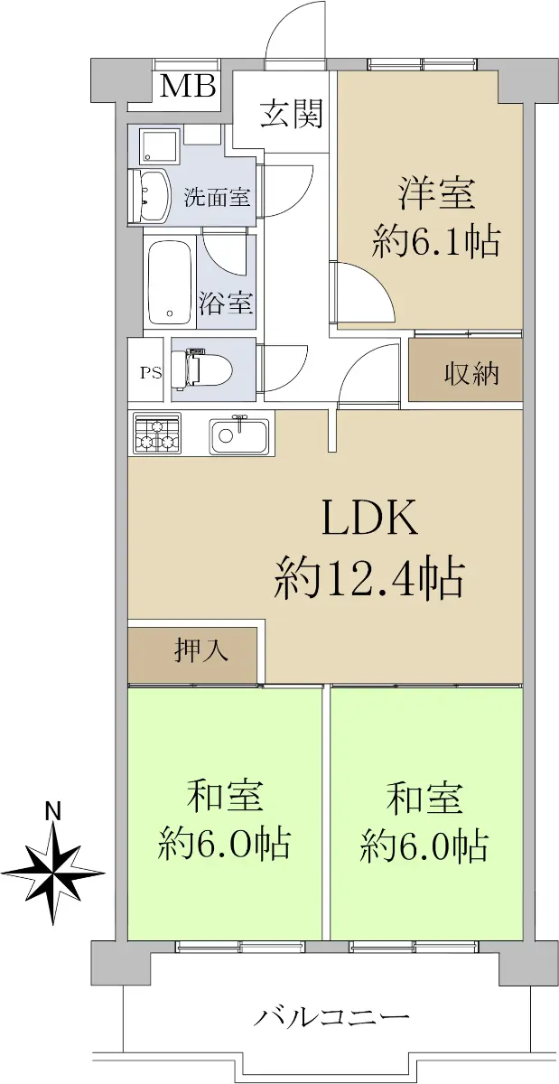 専有面積が68.32㎡、間取りが3LDKのお部屋で、南向きバルコニーの為、一日中温かく、明るくお過ごしいただけます。
