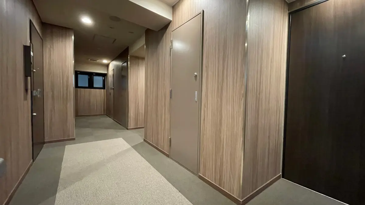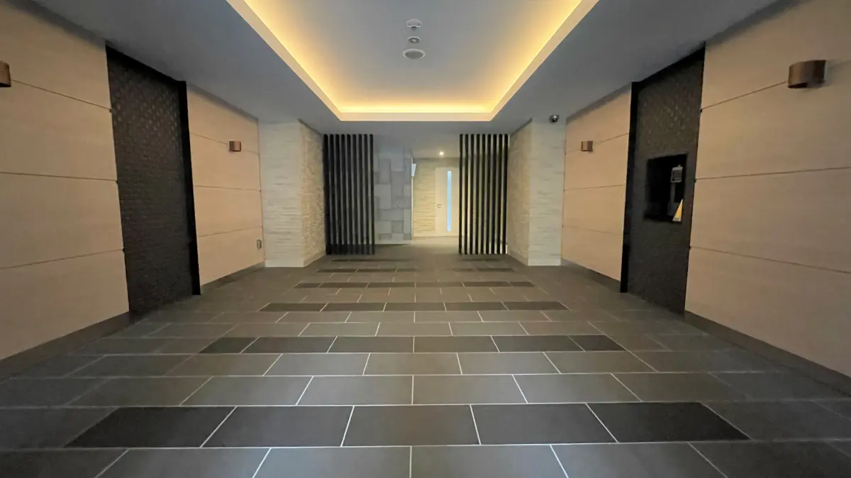 共用廊下はホテルライクな内廊下設計であり、高級感を感じさせます。