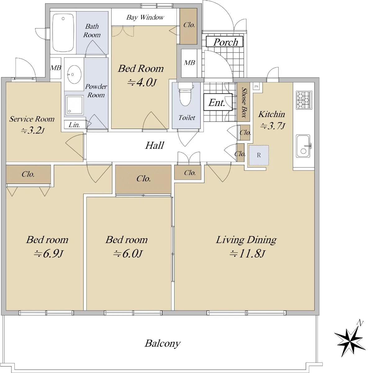 □間取り3SLDK ※S=サービスルーム(納戸)