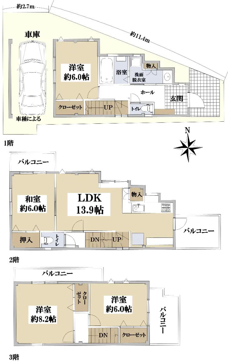 ■土地面積:68.02㎡(約20.57坪)