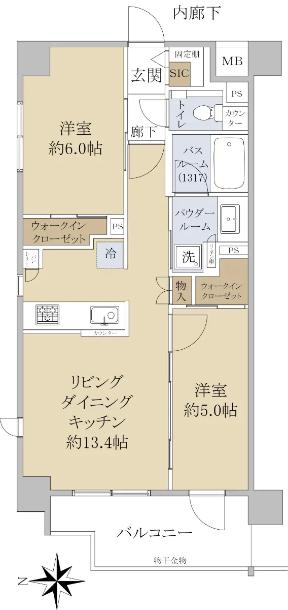 ◆専有面積54.90㎡的2LDK+2WIC(WIC=ウォークインクローゼット)