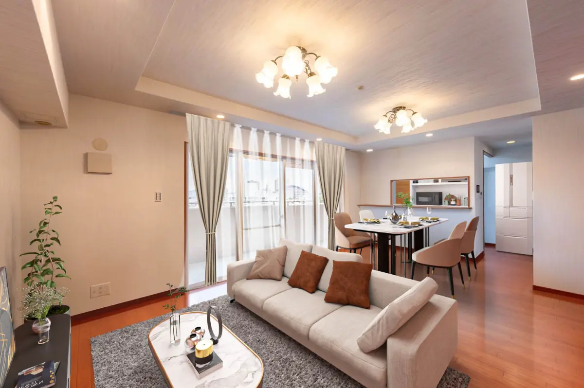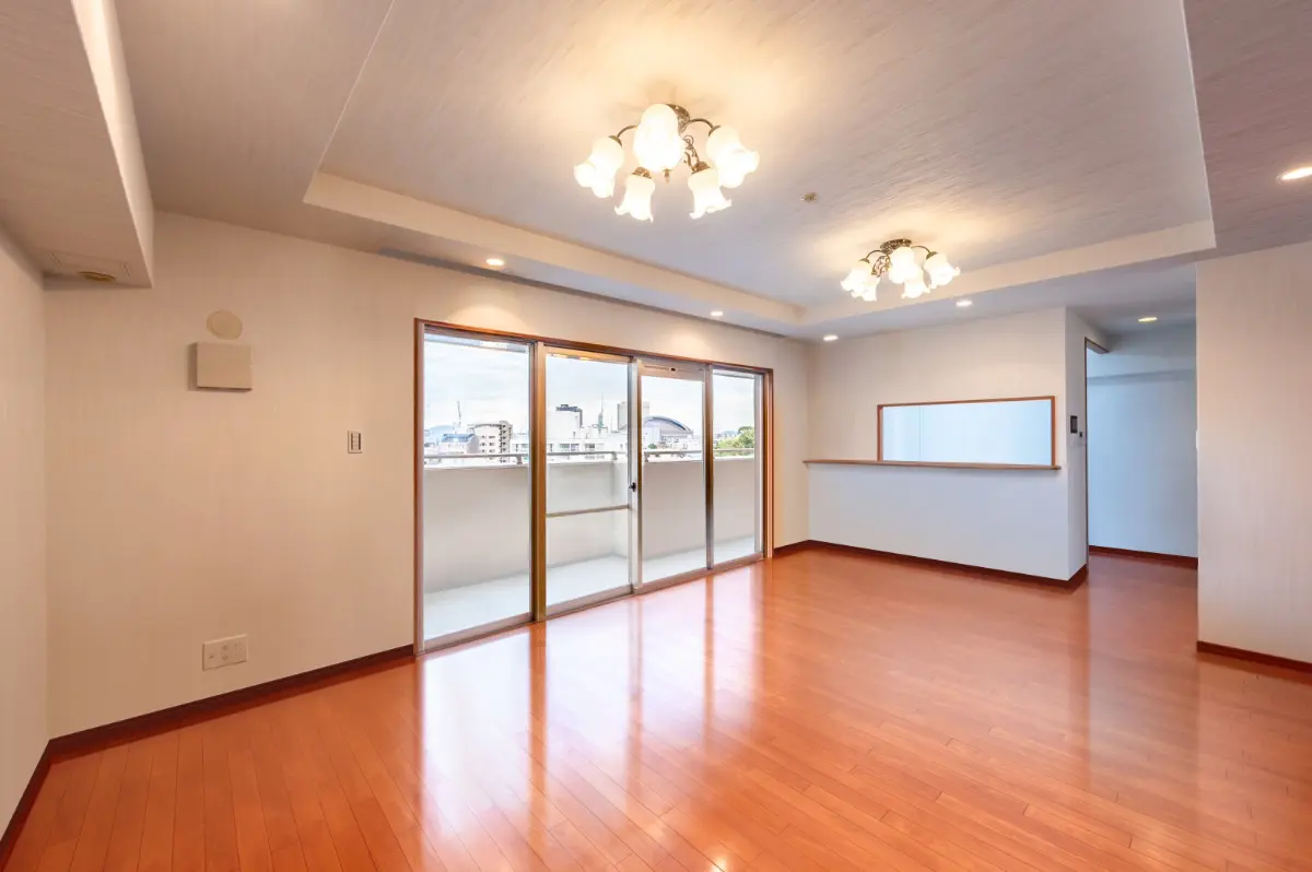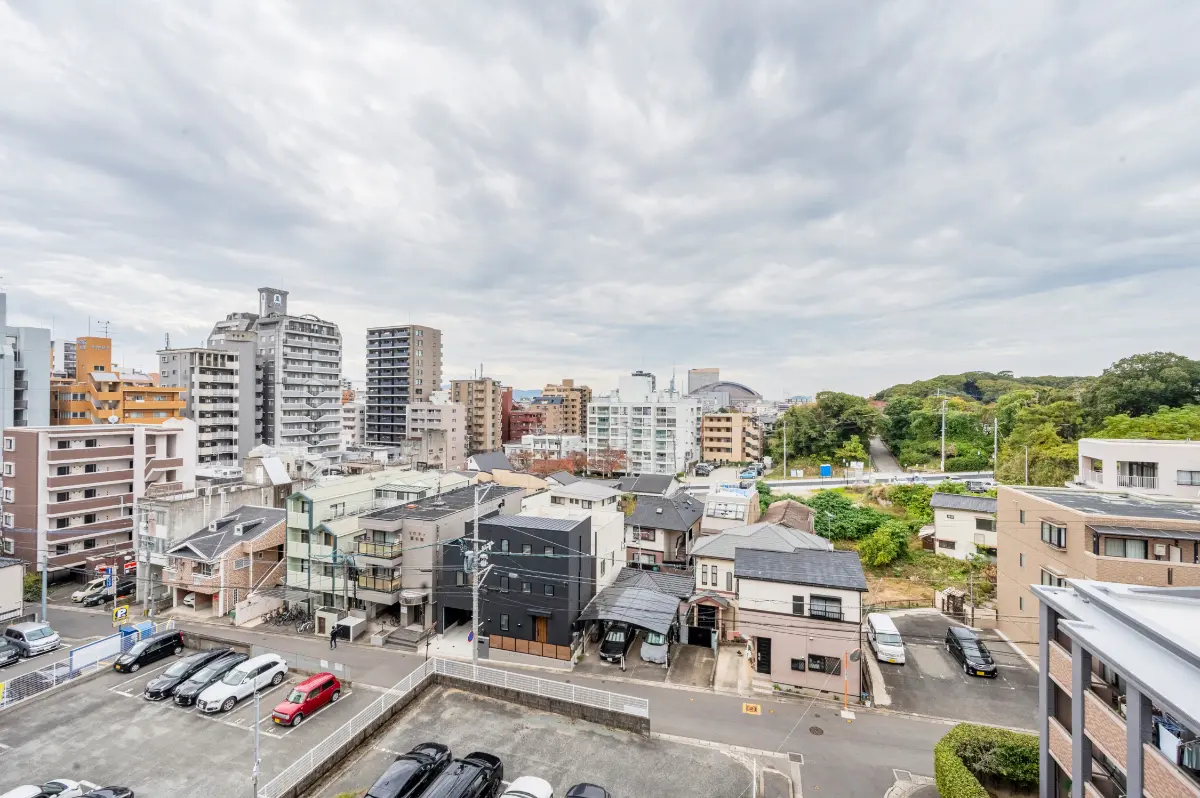 9階建の6階部分に位置しており、南西向きのバルコニーからは福岡タワーやPayPayドームも見える開放的な眺望です。横長LDKで日当りも良く明るい印象の室内です。