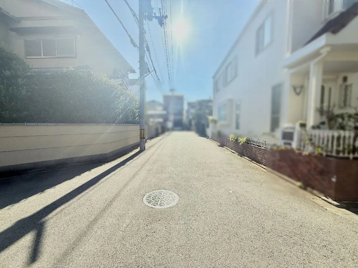 北西角地で前面道路は二方とも6m以上ございます。