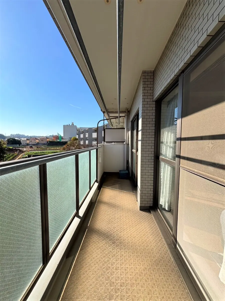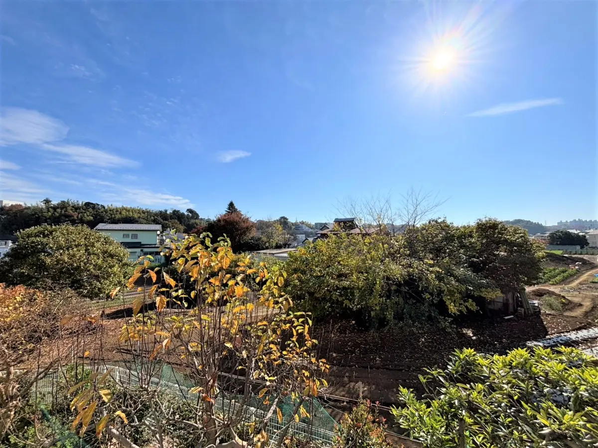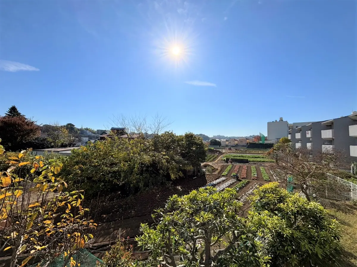 南東側のバルコニー前は、さえぎるものが無く、開放感があり緑溢れる眺望が広がります。