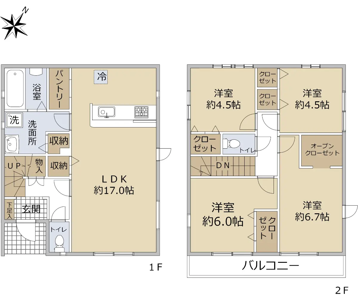 間取は4LDKです。全居室に収納があるほか、パントリーがあり収納が充実しております。