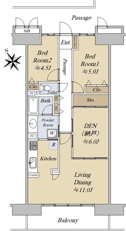 ▼専有面積:68.71㎡