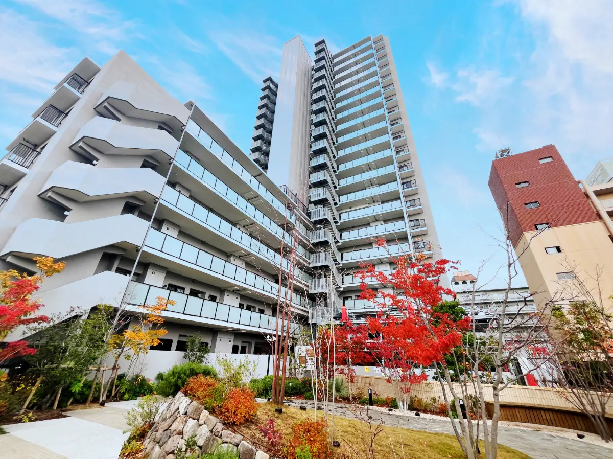 ブランニードタワー長居ガーデンスクエアは、約2,294㎡の広大な敷地に20階建てのタワーマンションと6階建ての低層レジデンスが複合して立っています。大阪メトロ長居駅駅前では史上初のタワーマンションです。