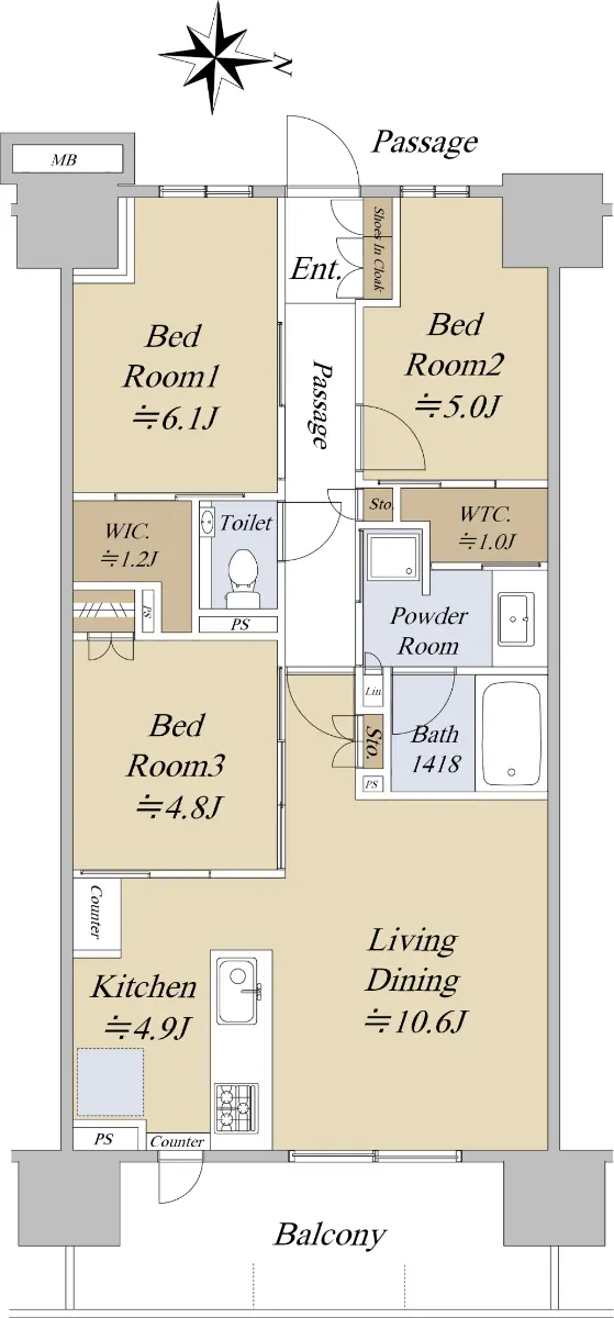 お部屋は3階・南向きにつき、日当たり・通風良好です。