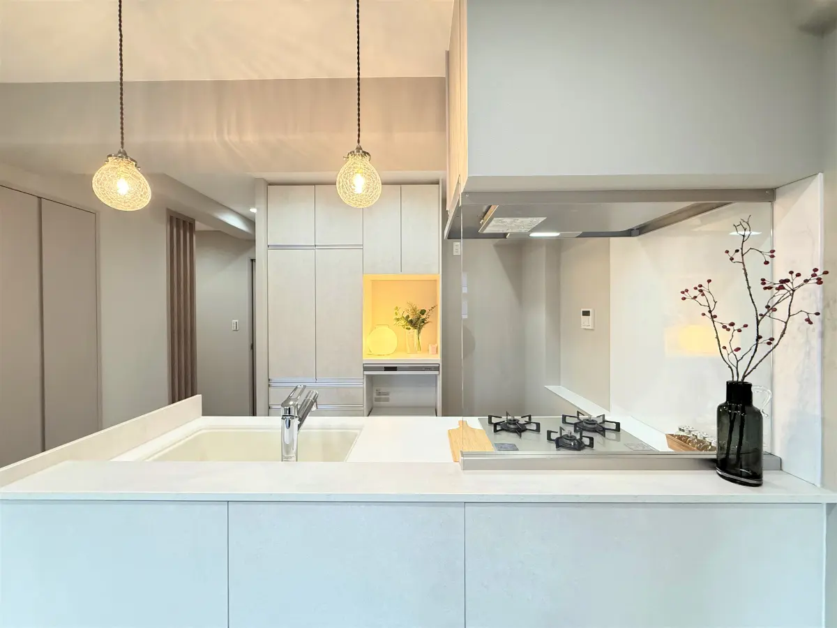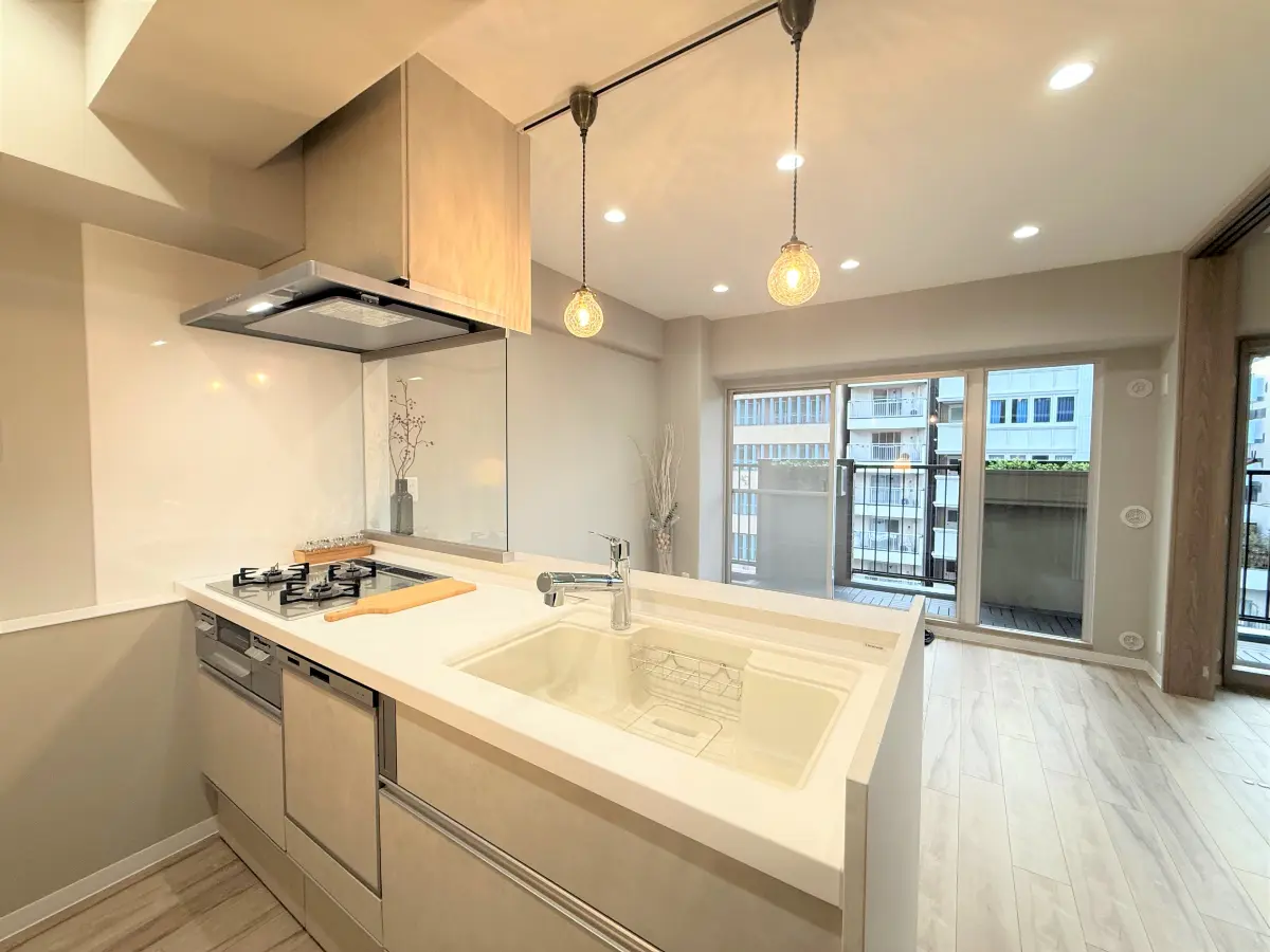 ◆システムキッチン新調(食器洗浄乾燥機付)、ユニットバス新調(浴室乾燥機付)、洗面化粧台新調、トイレ新調(ウォシュレット付)、カップボード新調、全室内装ドア等的建具新調、ダイノック工事、ダウンライト等的電気工事、全室クロス・フローリング張替、CF張替、フロアタイル張替、洗濯パン新調、スイッチ・コンセント新調、ハウスクリーニング等