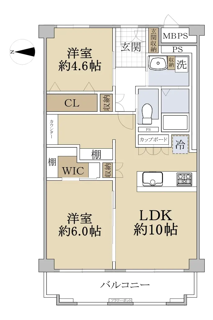 ◆専有面積:57.60㎡、2LDK