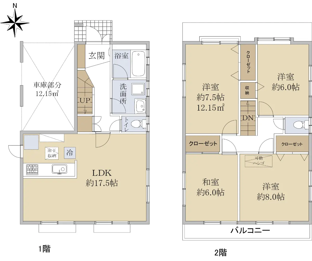 全居室6帖以上のゆとりある4LDK。全居室収納、季節物も収まるグルニエ付きで収納力も魅力。家族みんなが快適に暮らせる住まいです。