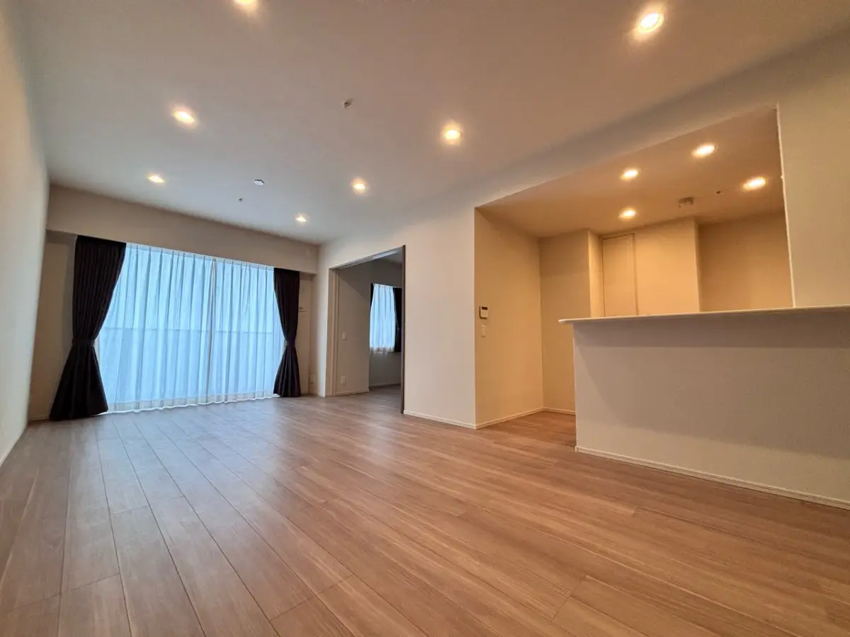 本物件は、建築後未入居、24階部分のオーシャンビュー住戸です。高層階ならではの眺望が居住者を迎え入れます。LDKは約18.9帖の広さがあり、天井高約2.5mのため、開放感のある空間となっています。