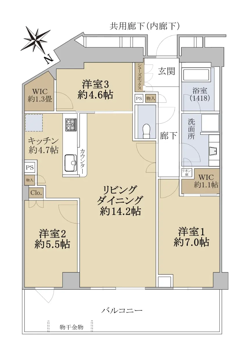 *3LDK+2WIC(ウォークインクローゼット)
