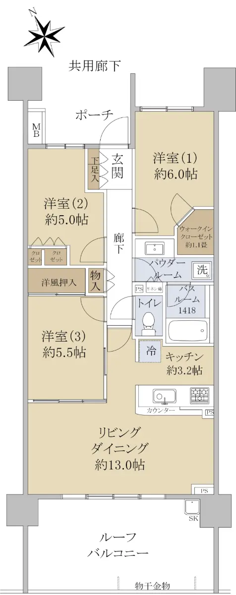 ◆専有面積:72.66㎡ ルーフバルコニー面積:18.60㎡