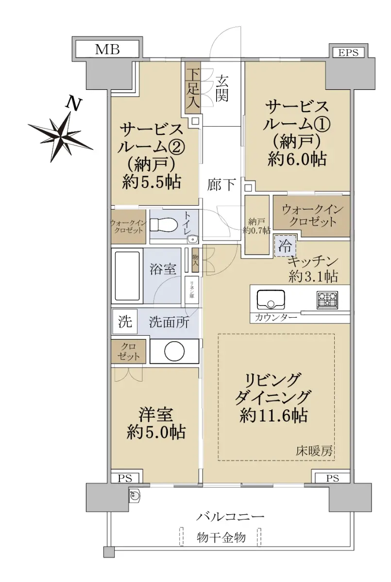 S=サービスルーム(納戸)